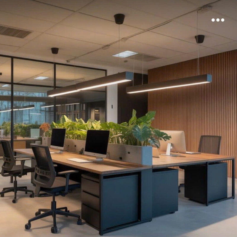 Đèn Thả Trần Văn Phòng: Sự kết hợp hoàn hảo giữa chiếu sáng và trang trí. Với thiết kế dạng thanh nhôm hiện đại, đây là lựa chọn số 1 cho các phòng họp, khu vực làm việc, bàn làm việc dài.